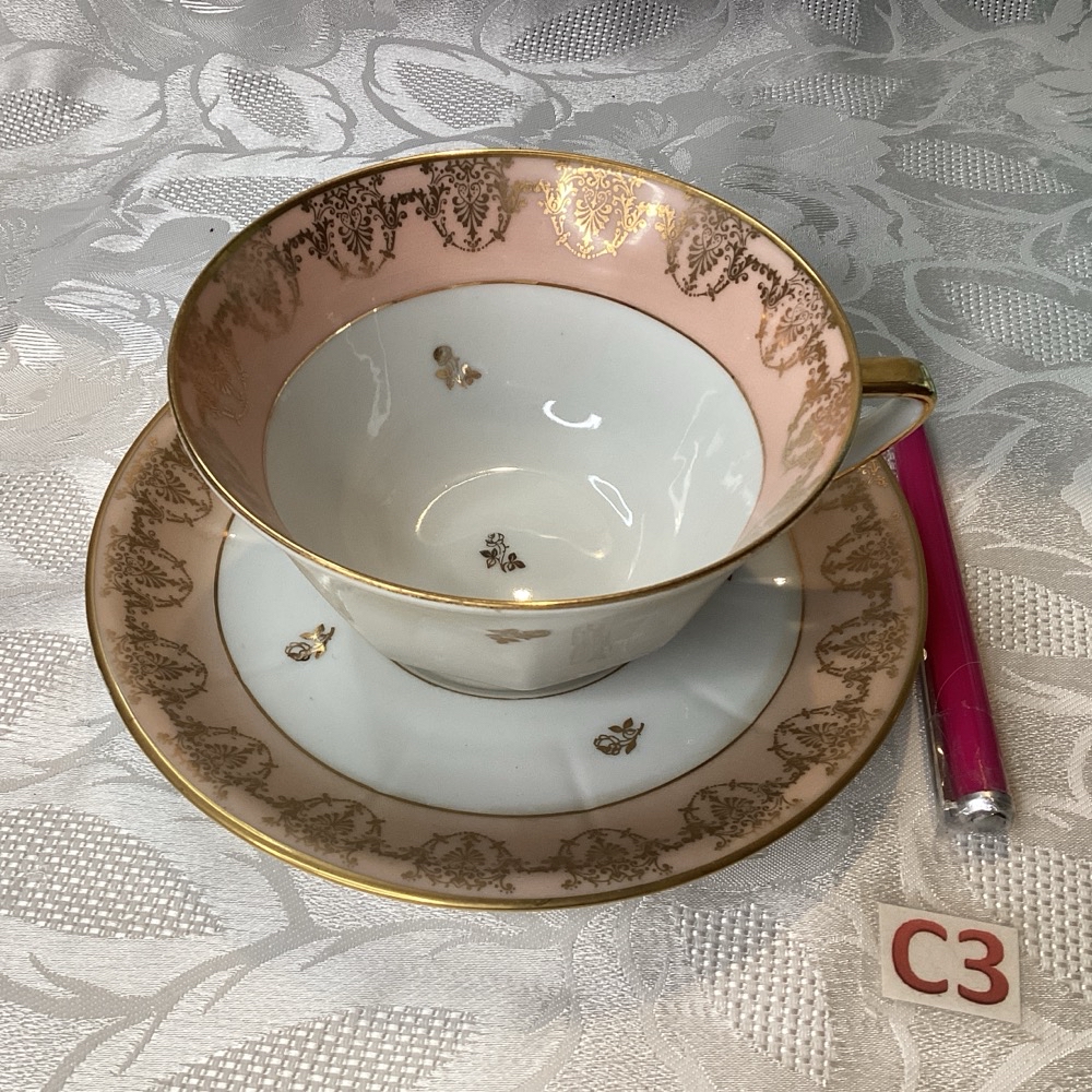 Grande tasse a thé et sa soucoupe vintage en porcelaine dej.c3