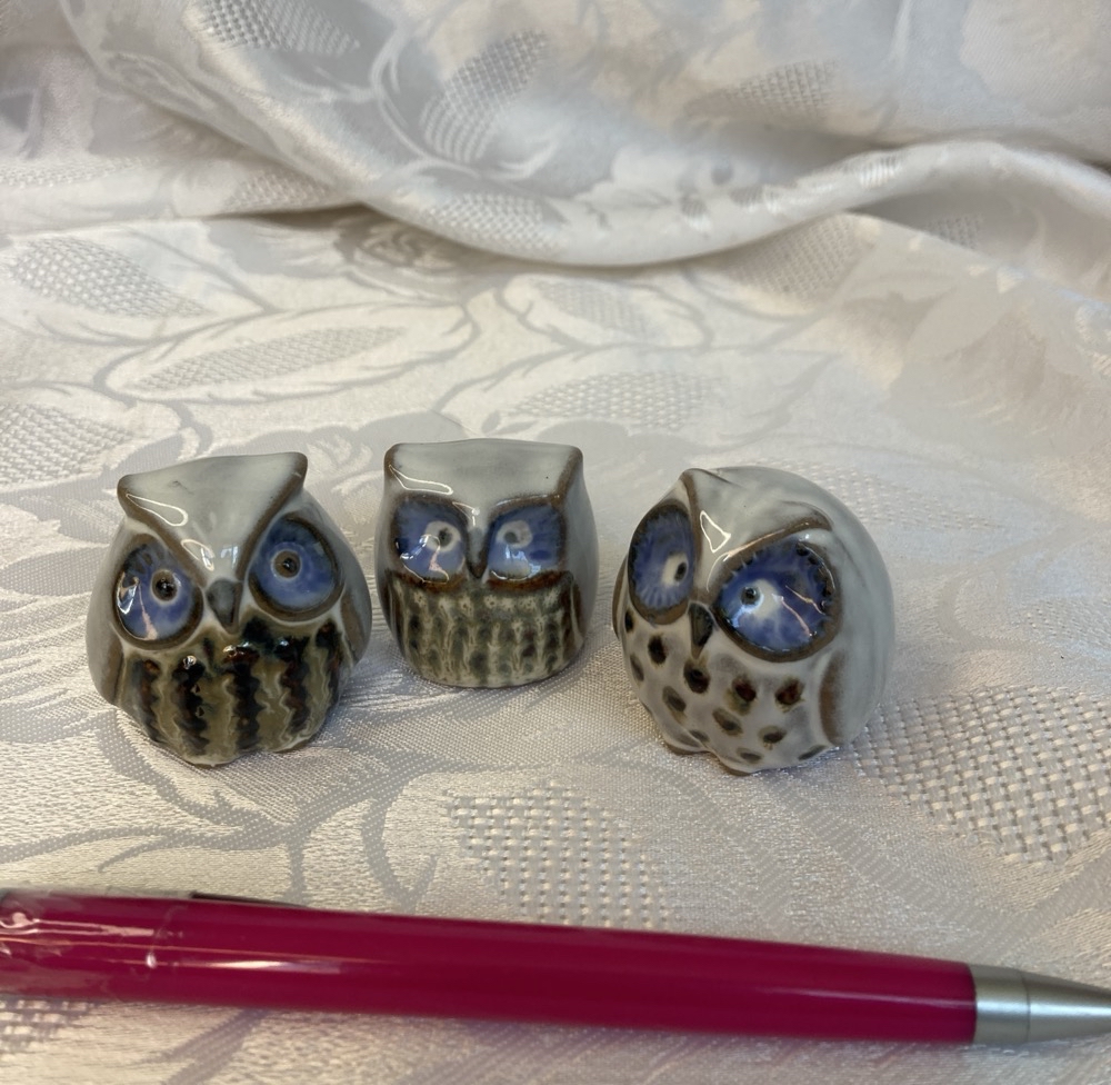 Lot de 3 chouettes hiboux en céramique gris bleu dec.c1