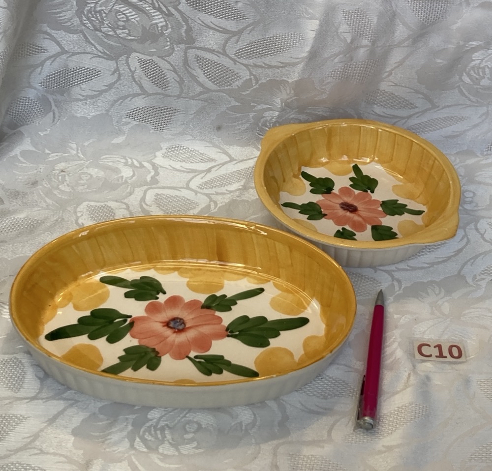 Lot de deux plats à four fleur jaune vintage Cui.c10